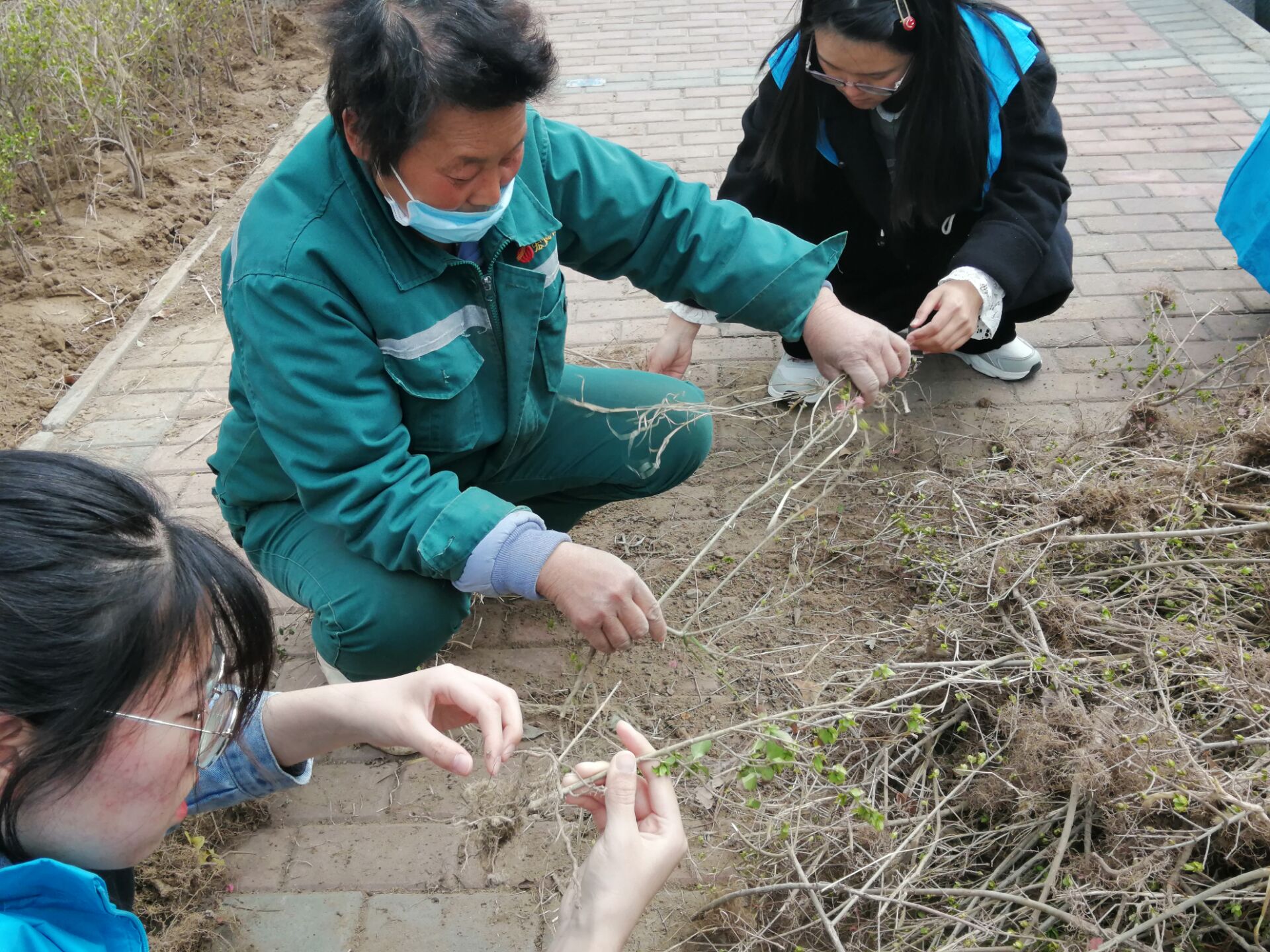 下午两点半,志愿者们和环卫工人一起在校园内进行植树活动,志愿者们干劲十足,积极配合。志愿者和叔叔阿姨们一起先将荒地进行摘苗、除草,之后大家一起松土、种树苗、浇水。在植树过程中我们了解到有的志愿者是第一次参与植树活动,也种下了人生的第一棵树,非常有纪念意义,并且植树时叔叔阿姨还告诉我们要怎么松土,如何浇水才能让树苗更容易存活。