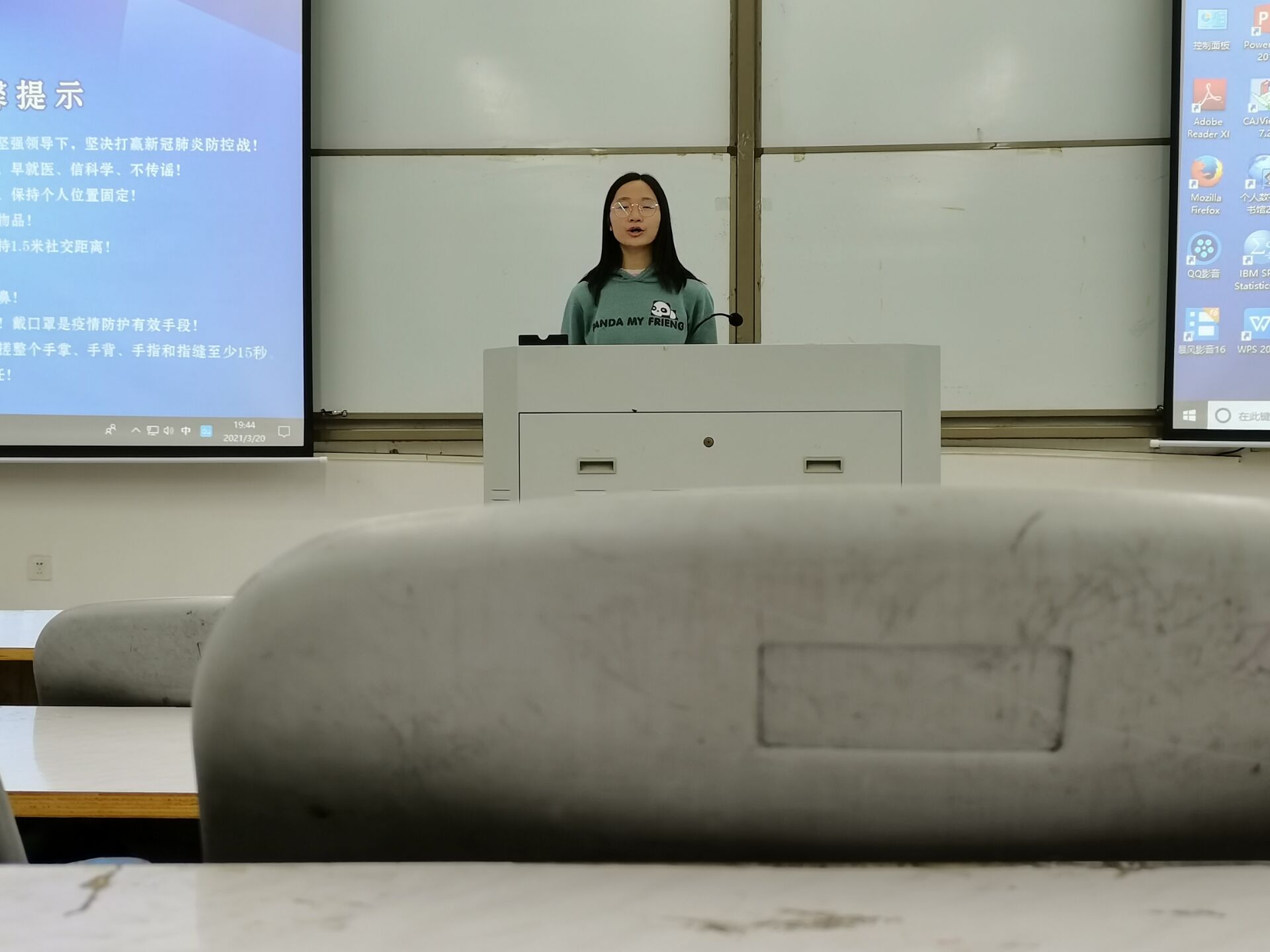 首先她向社员们提出了如何度过寒假的问题,用PPT有趣的展示了一些同学宅家与手机为伴的错误生活方式,列举了一些可以在寒假做的有意义的事情,如学习计算机语言或打工。另外,她还分享了一些书籍如《人类简史》和《R语言实战》,推荐了一些学习中好用的APP。接下来,她讲述了一些关于精算师证的内容,同学们表示受益匪浅。