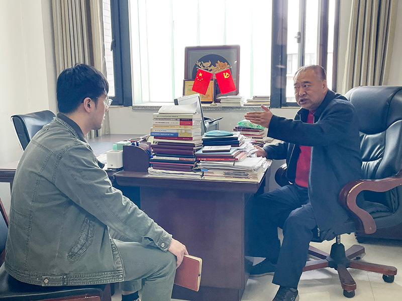 2021年3月24日下午,公司党委书记徐金安同新入职的赵涵、张栗珩两位老师谈话。