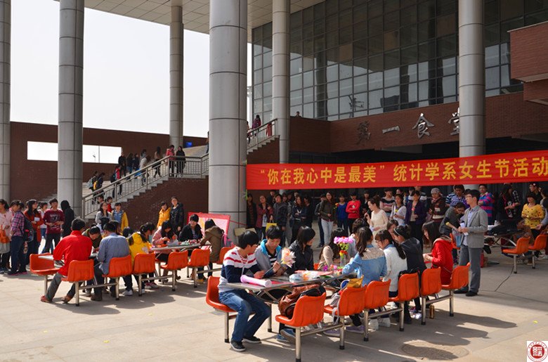 “三八”妇女节,统计学系组织“你在我心中是最美”为主题的女生节系列活动。3月7日男生集体骑车接送女生上下课,以此倡导关爱女性的理念;3月8日中午在第一餐厅门口进行折纸花活动,折纸达人现场教授折纸艺术,大家踊跃参与,一起动手,把折成的各种美丽纸花送给老师和女生,同学们还表演了吉他弹唱等文艺节目,在欢乐温馨的气氛中,同学们度过了一个有意义而难忘的节日。