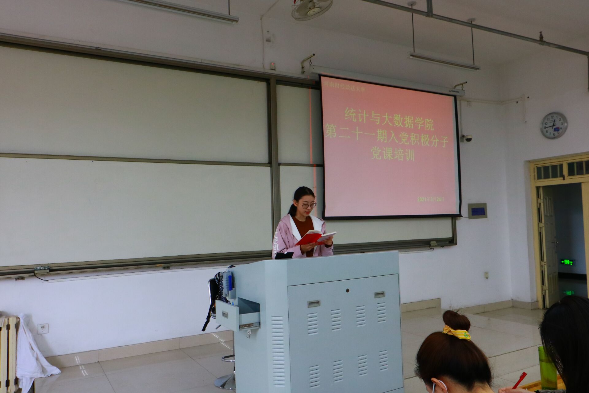 3月24日中午,公司于教科楼304教室开展了第二十一期第二次入党积极分子党课培训。本次党课培训由员工党建办公室主持,公司100余名入党积极分子准时到场参加。